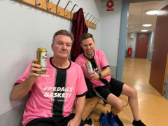 Äntligen fler än fyra spelare! Det rosa laget mönstrade Pelle, Peter, Piffi och Tomas. Det svartare laget bestod av Henning, Lasse Calzone, The Nype och Olle.