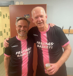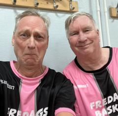 Det skära laget hade genomgående säkert skytte och fina returer. Men den svarta lagmaskinen ångade på och vi vann till slut med 46-20. Under andra halvan av matchen var utgången given. En eloge till de rosafärgade för att de höll humöret uppe!