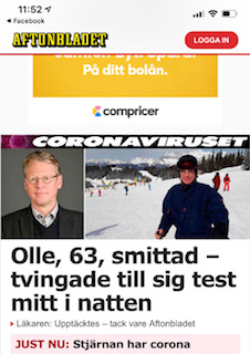 "Ni som spelade i fredags och inte har symtom behöver bara hålla tummarna för att ni klarat er. Om någon händelsevis fått förkylningssymtom efter matchen så ska ni ringa 1177 och berätta att Olle är positiv, så kommer ni också att bli testade."